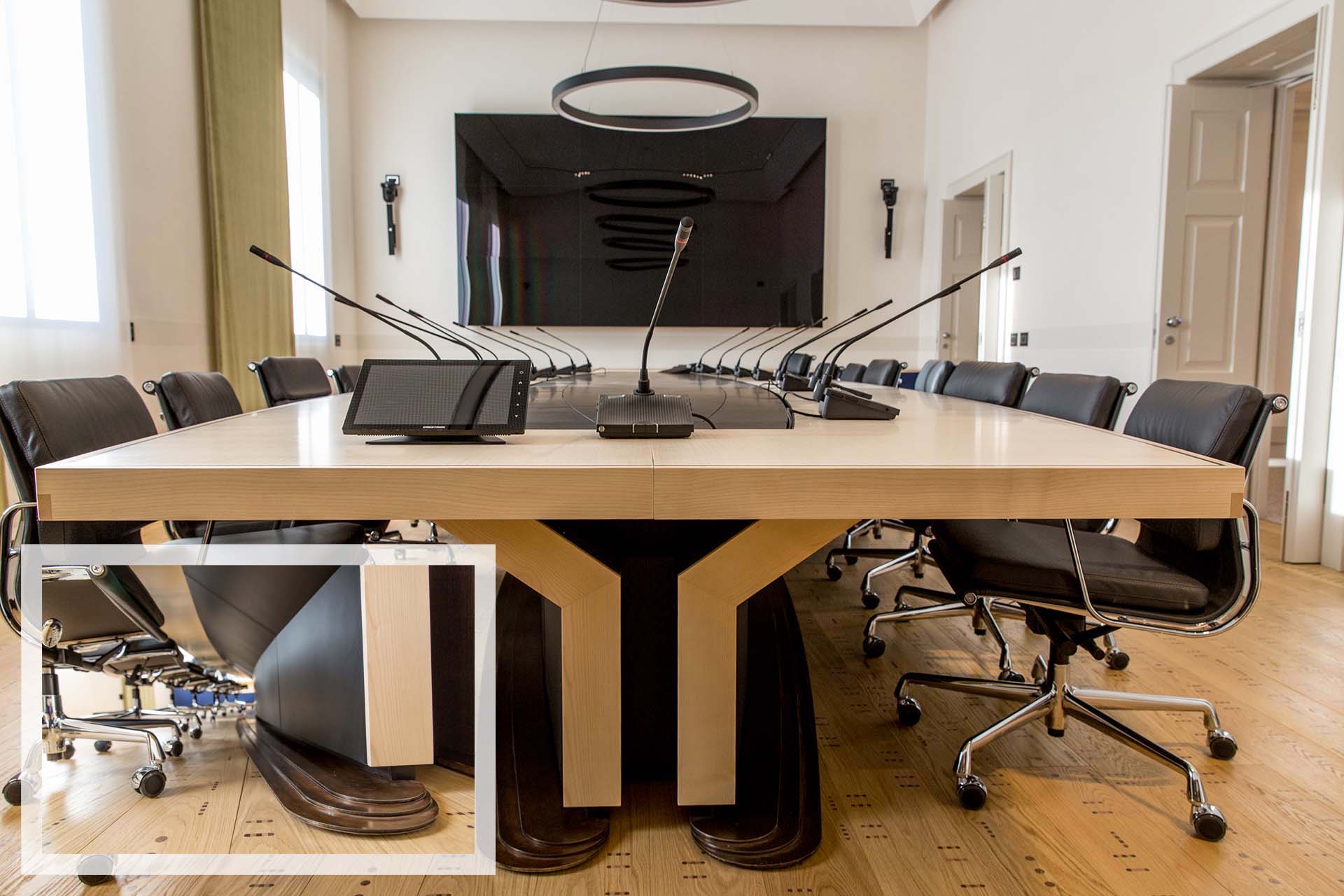 Arredi sala riunione, uffici dei presidenti: ferro brunito e rovere