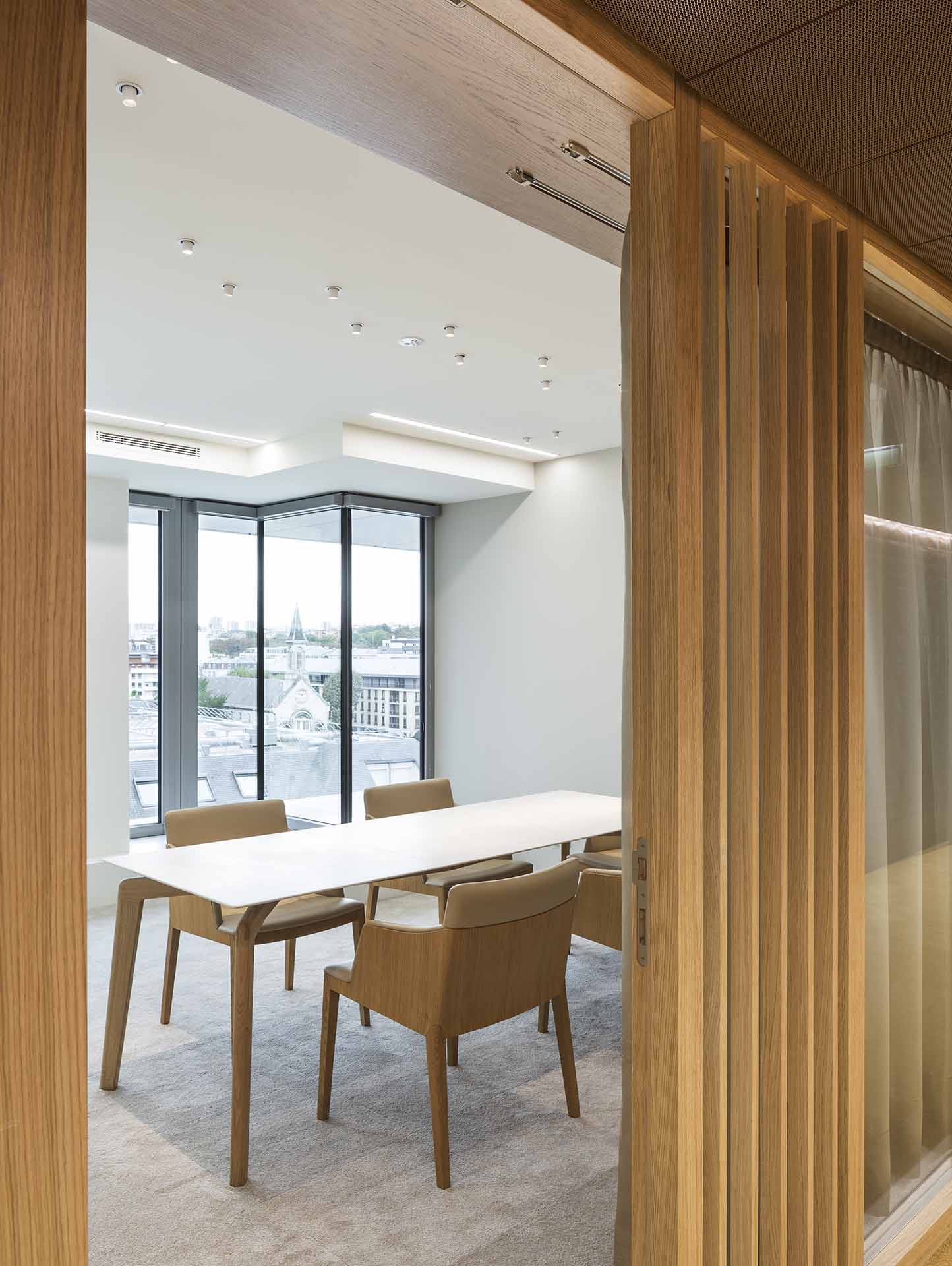 Fornitura di pareti divisorie per uffici, tavoli e sedute in legno massiccio