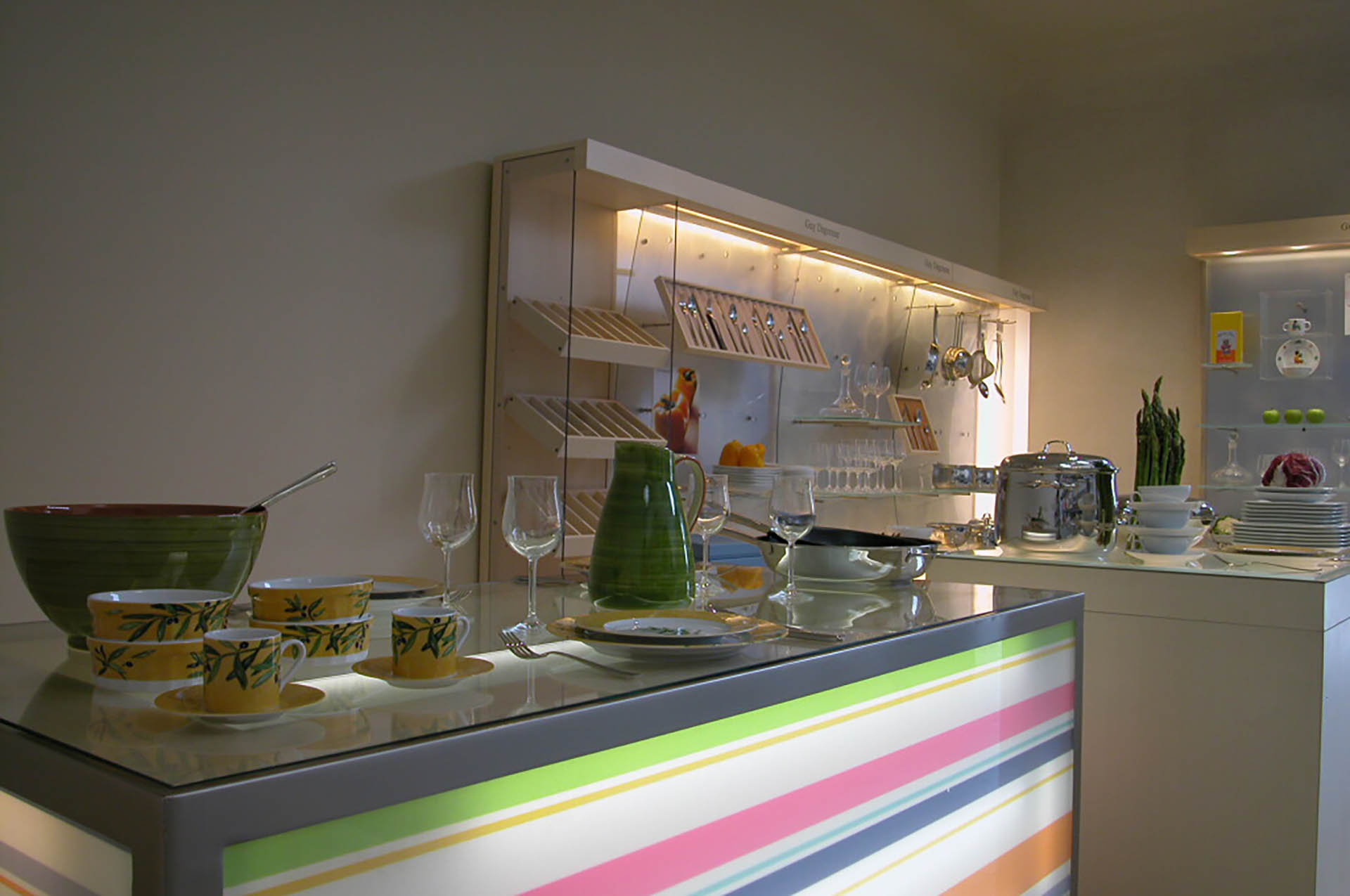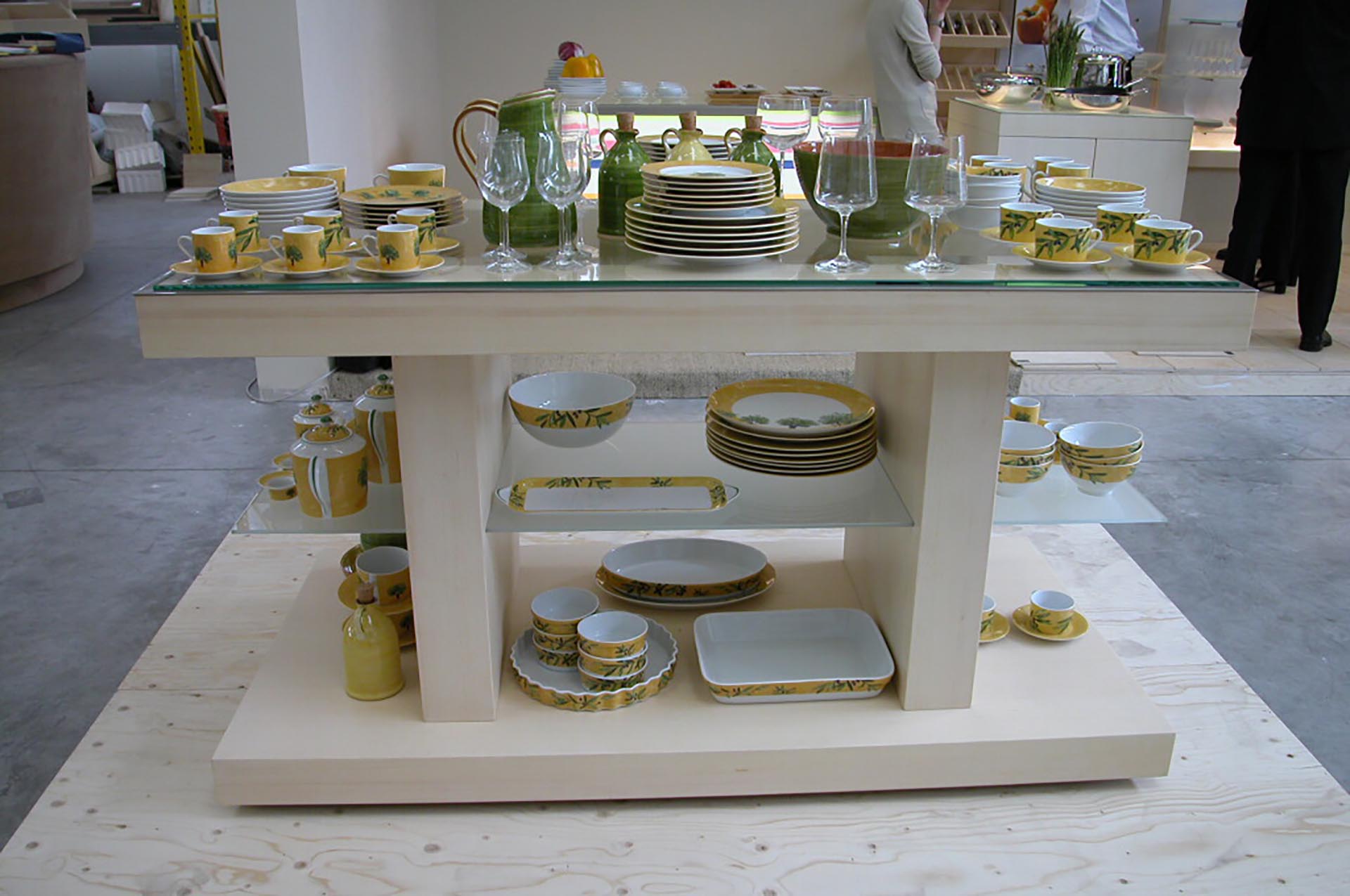 Allestimento “corner” commerciale con banco cassa e strutture espositive