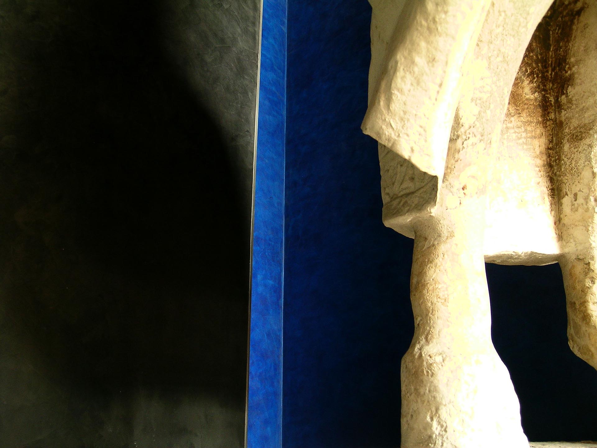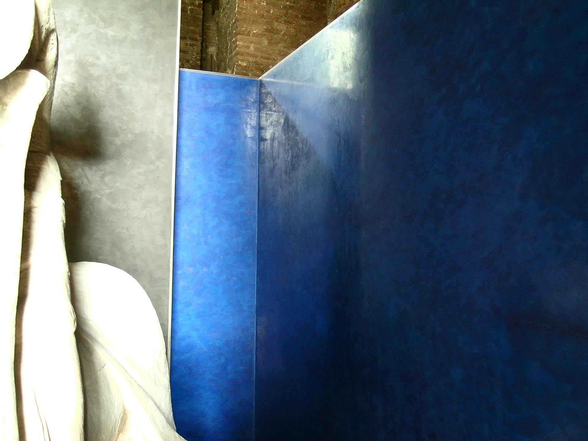 Realizzazione di strutture espositive in legno e marmorino artigianale ed inserti in ferro naturale