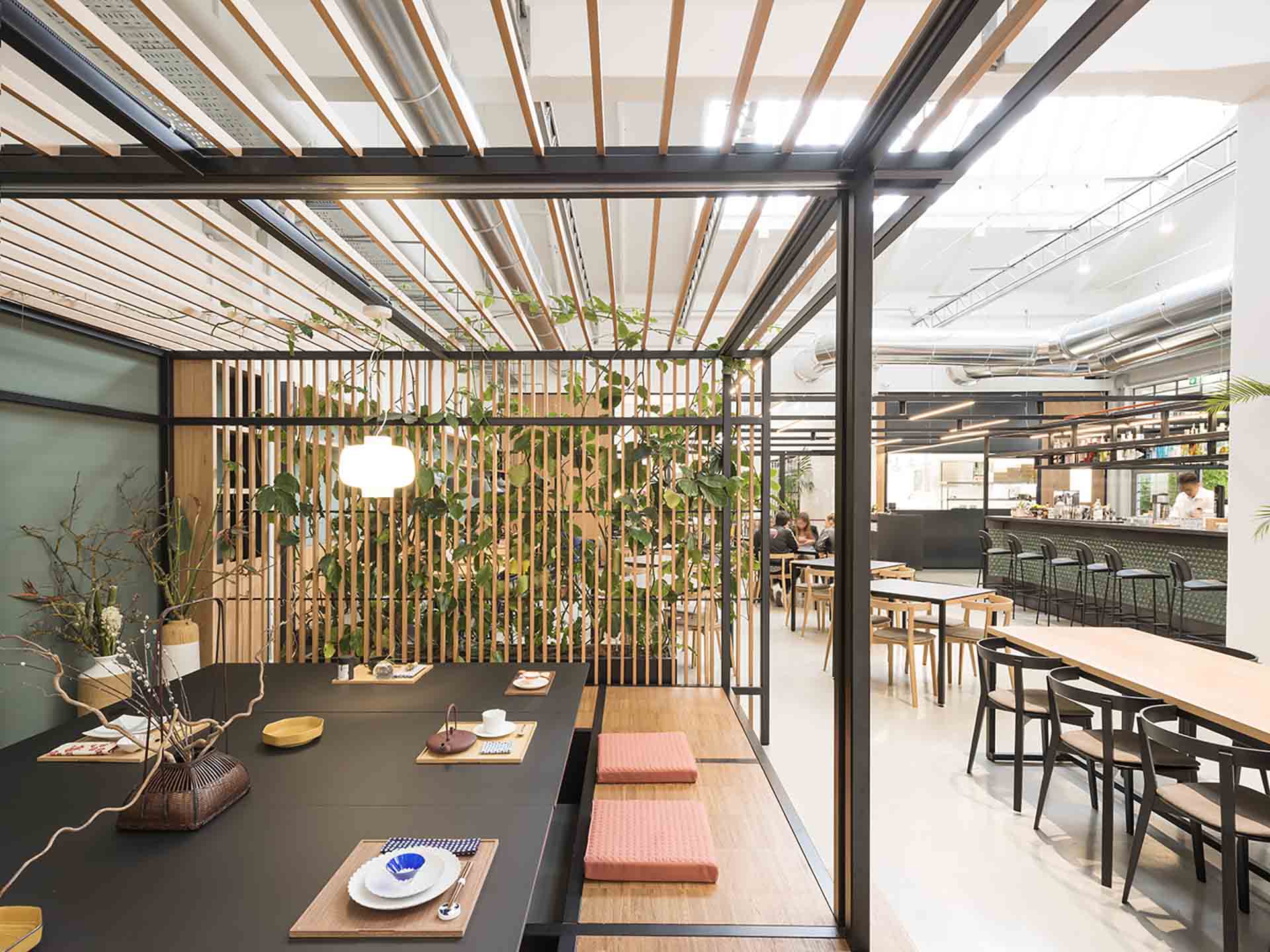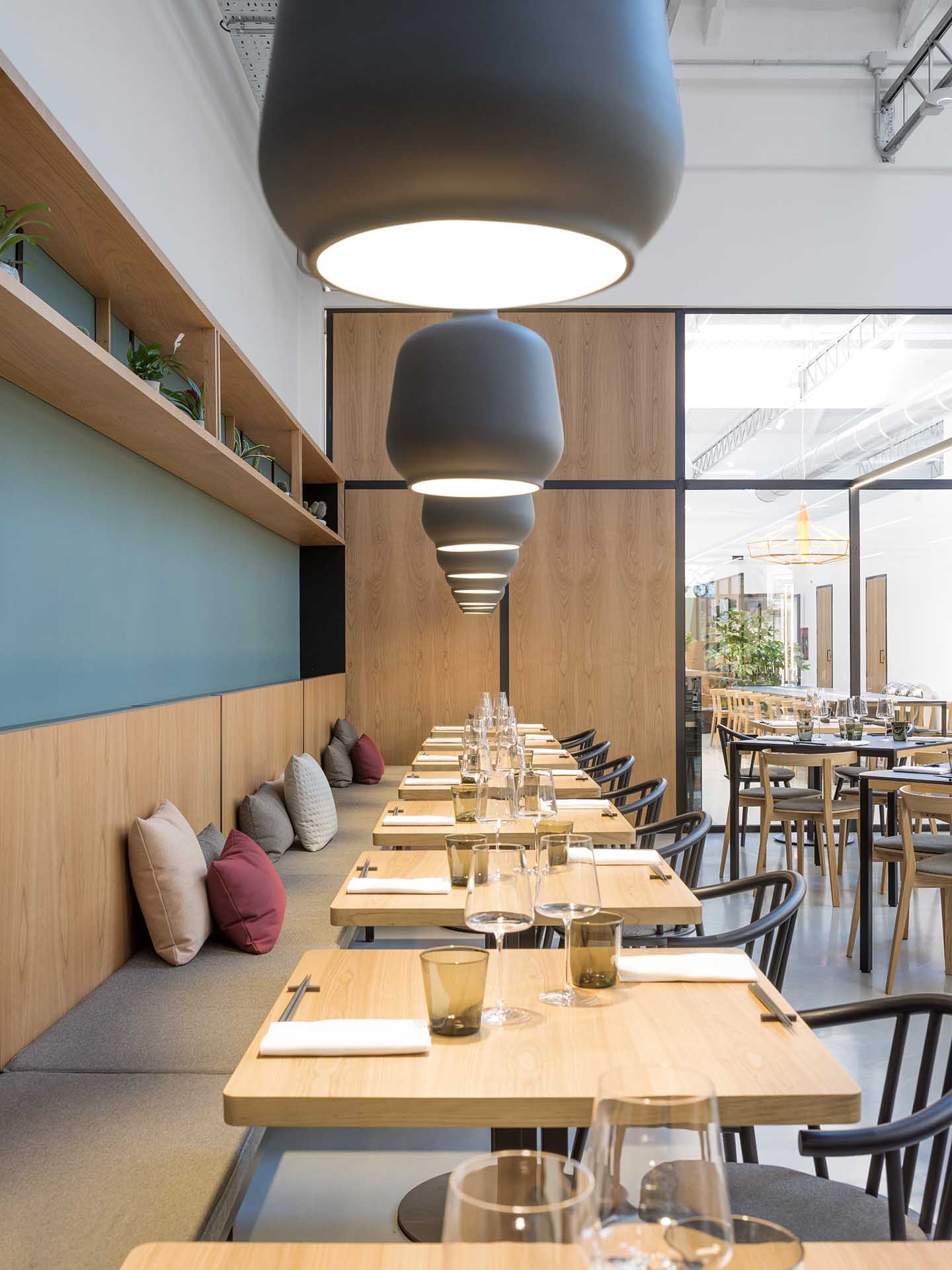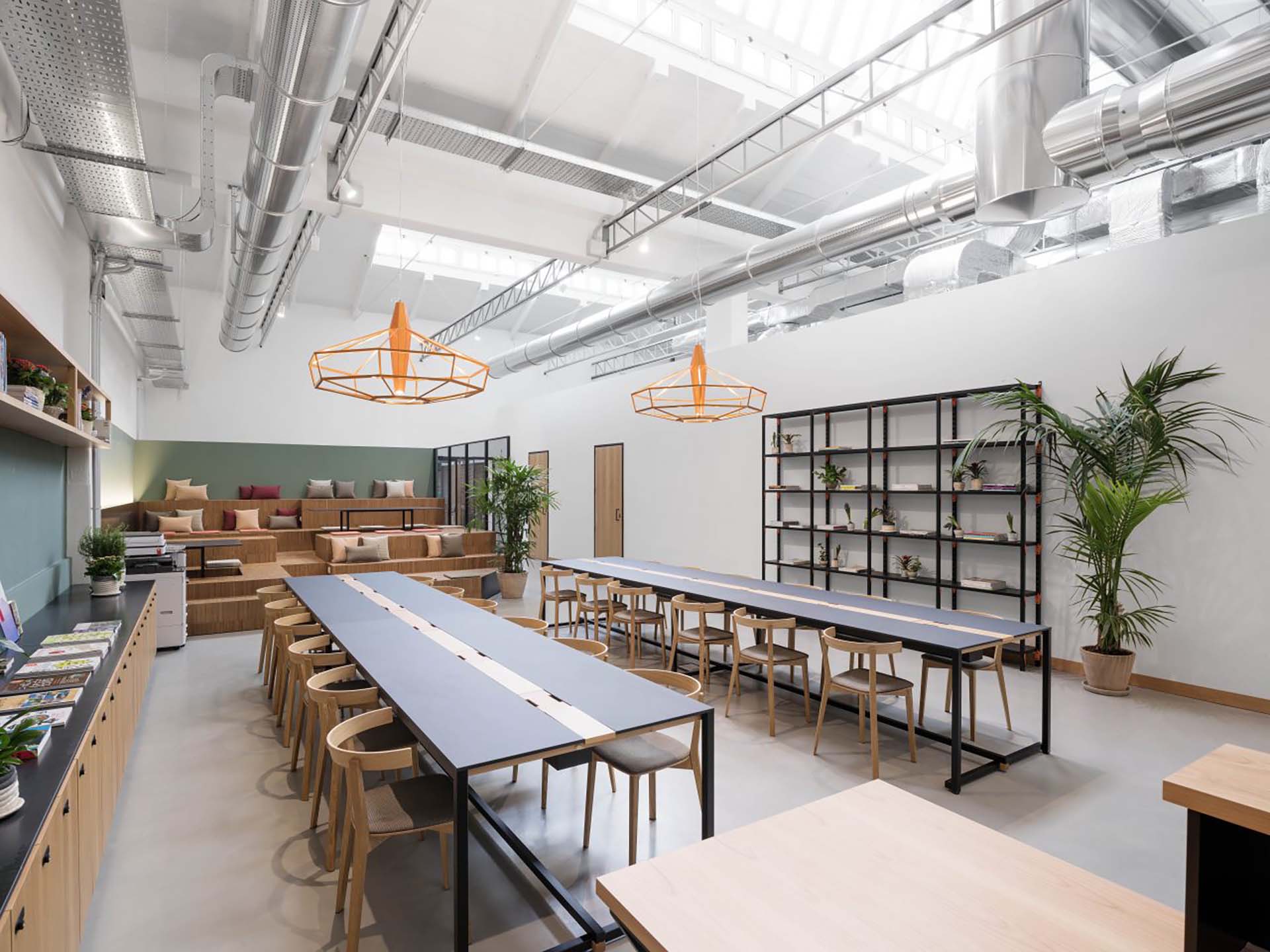 Gestione dell’intero lavoro come general contractor. Dalle demolizioni, impianti agli arredi dell’area negozio con strutture, banchi espositori e banchi cassa, in legno e ferro naturale, area ristorante con banco bar, tavolini e sedute, area uffici con pareti divisorie e postazioni smart working.