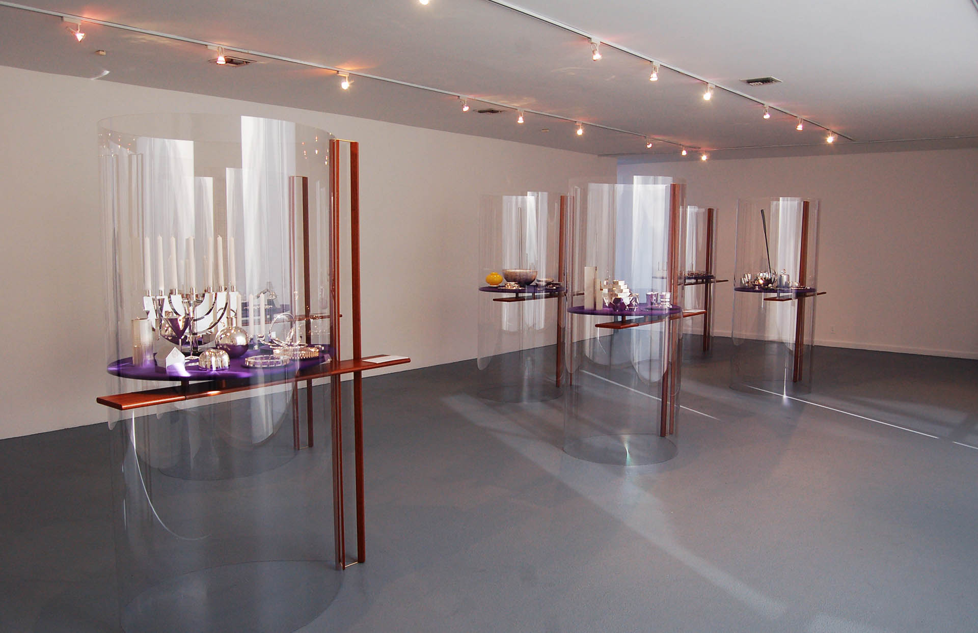 Realization of display cases in polycarbonate, mahogany and alcantara...