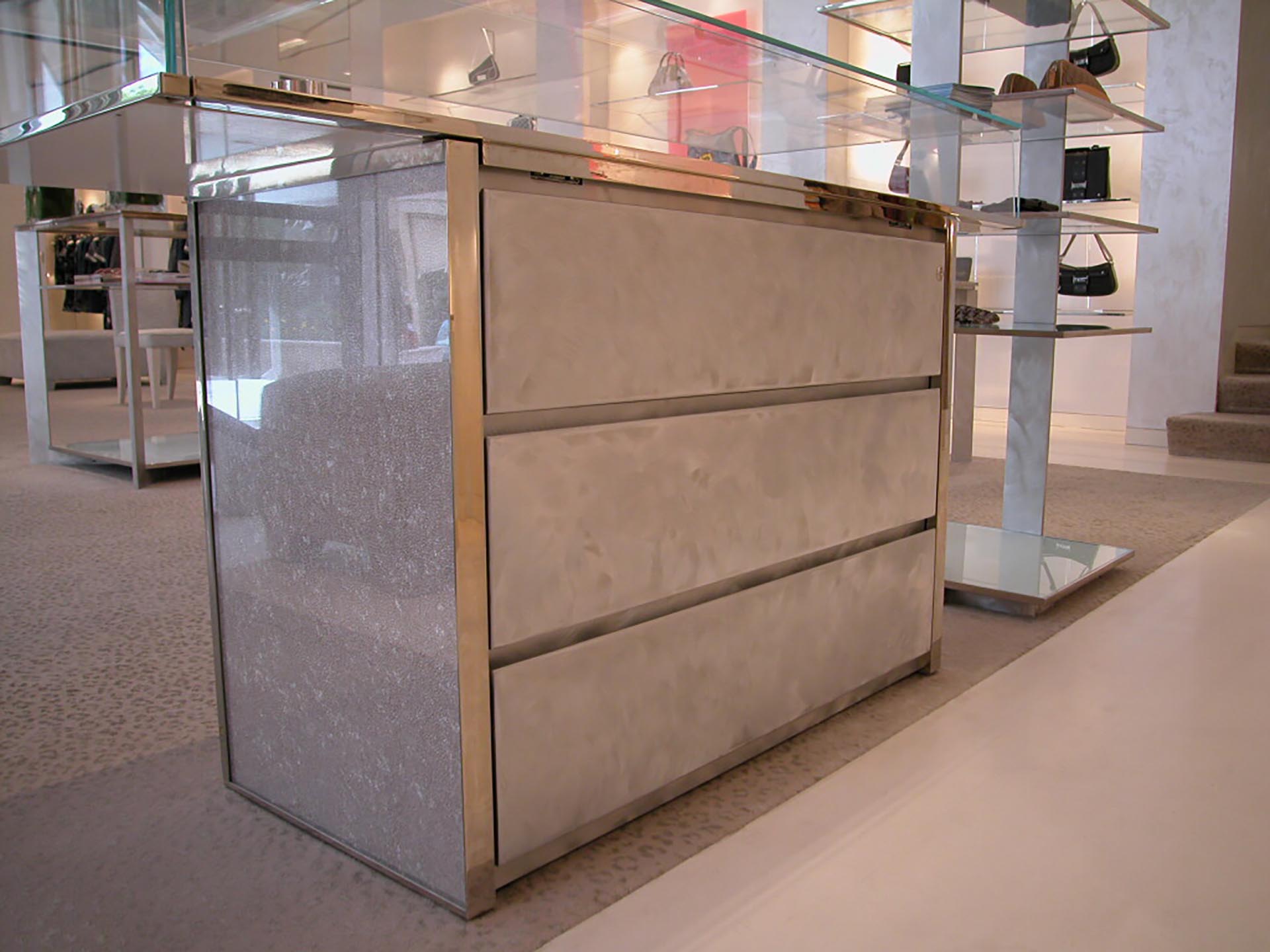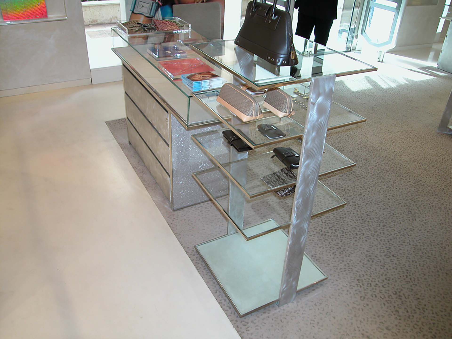 Shop furniture with counter plus display structures and showcases